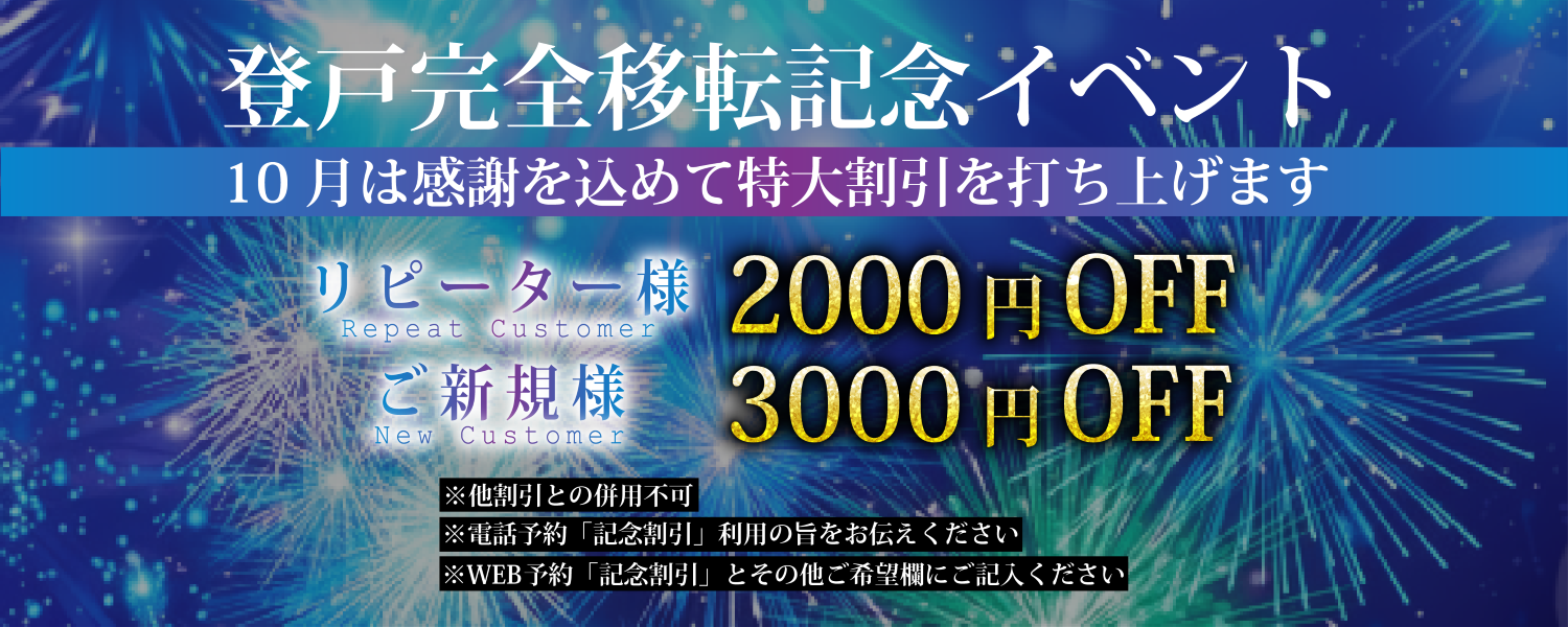 WEB予約の場合は、ご要望欄に「記念割引」とご記入ください。